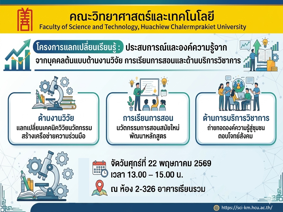 ขอเชิญเข้าร่วมโครงการแลกเปลี่ยนเรียนรู้ ประสบการณ์และองค์ความรู้จากบุคคลต้นแบบด้านงานวิจัย การเรียนการสอนและด้านการบริการวิชาการ ข่าวประชาสัมพันธ์ kmsci